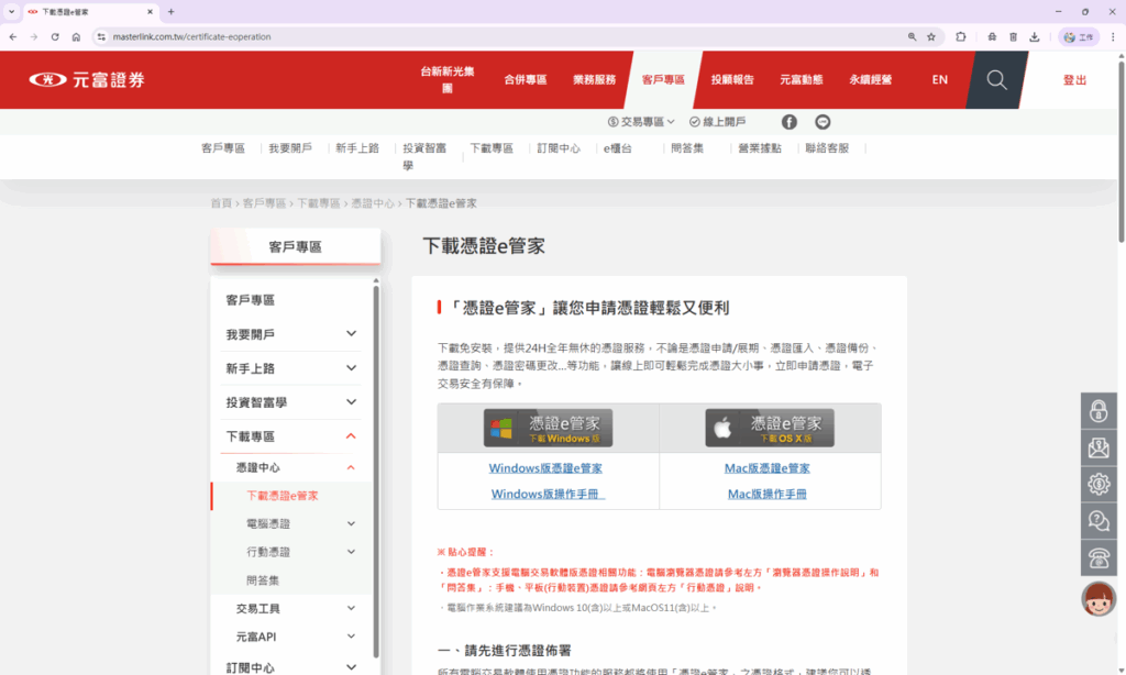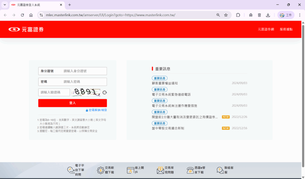 收到開戶完成通知,首次設定元富證券帳戶的電子交易密碼