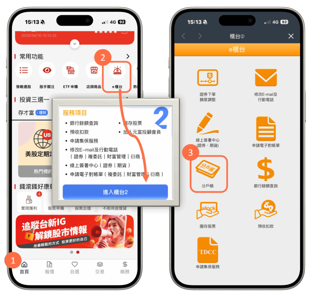 首頁 → 常用功能 → e 櫃台(選擇櫃台 2 )→ 分戶帳