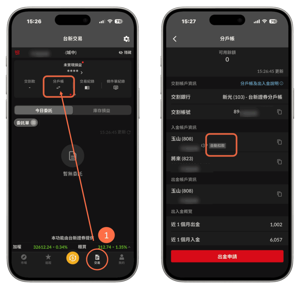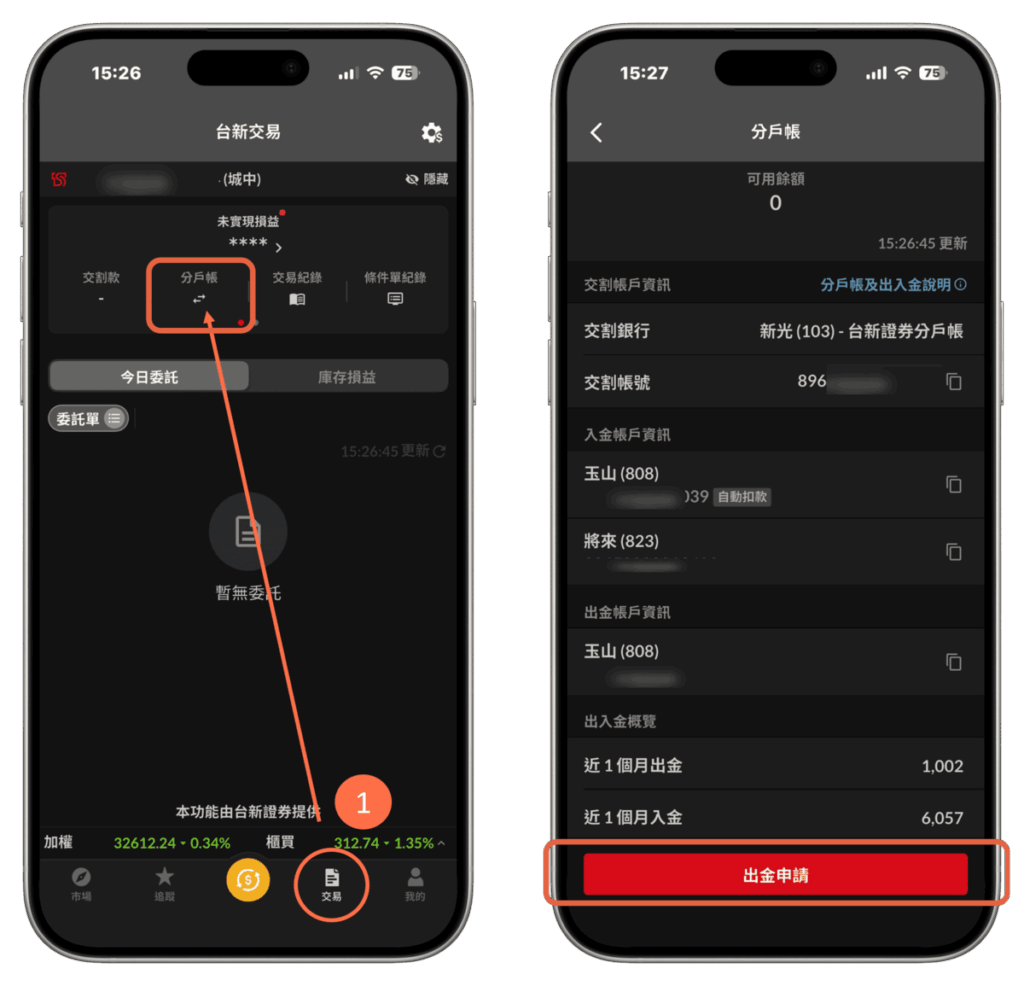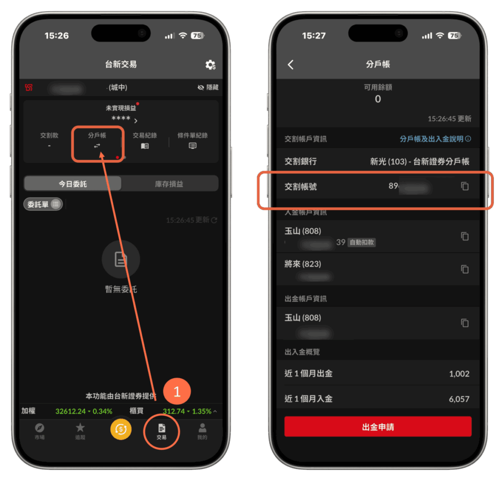 - 在富果 App 中,您看到的「交割帳戶」就是您的台新證券分戶帳。