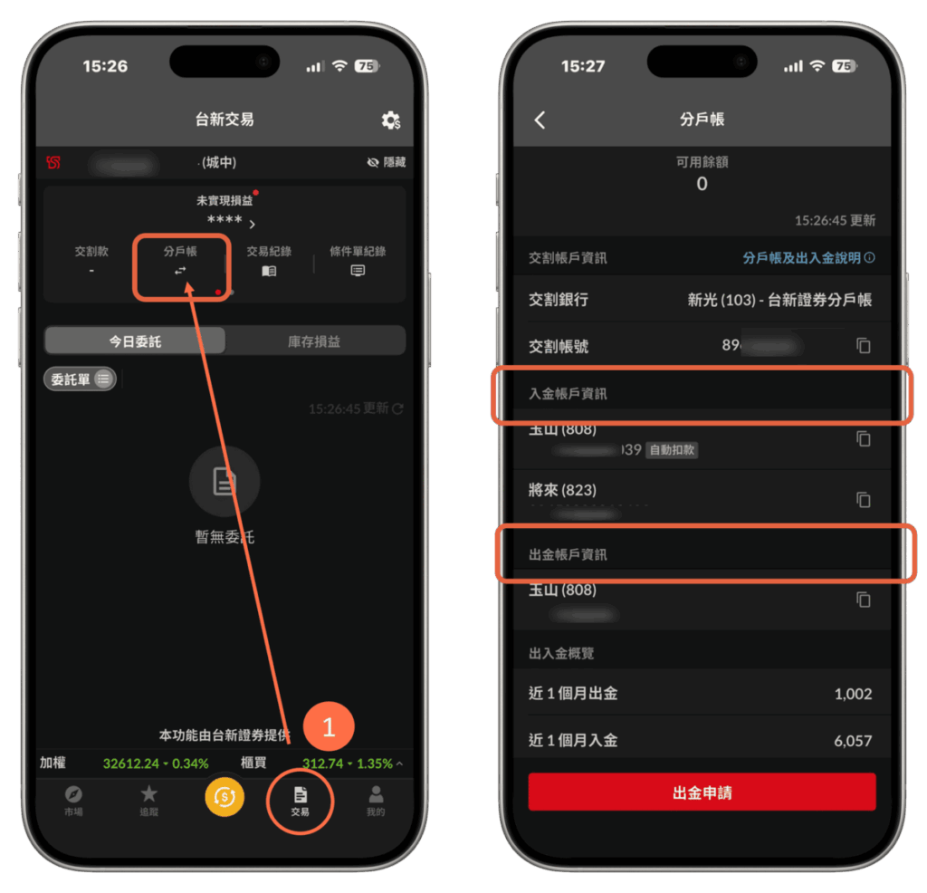 - 在富果 App 中,您看到的「交割帳戶」就是您的台新證券分戶帳。