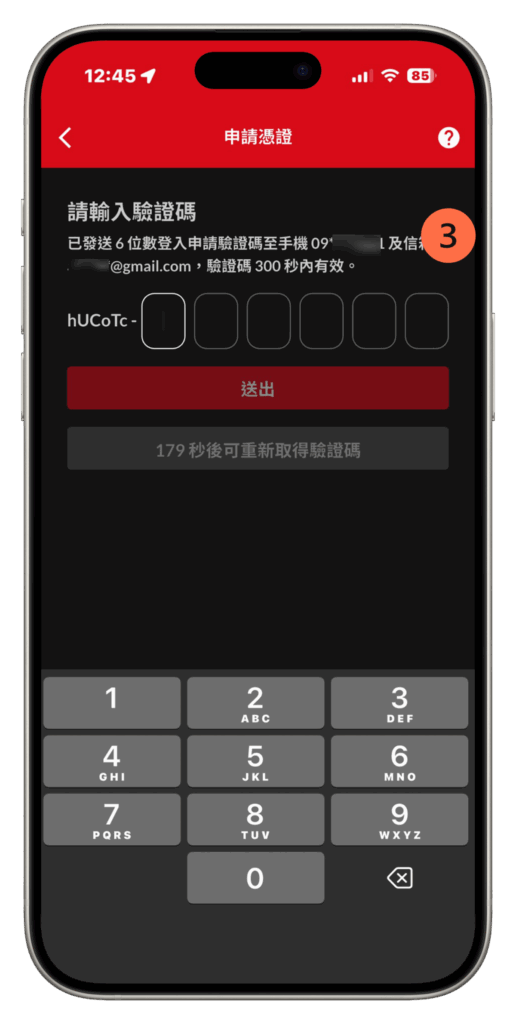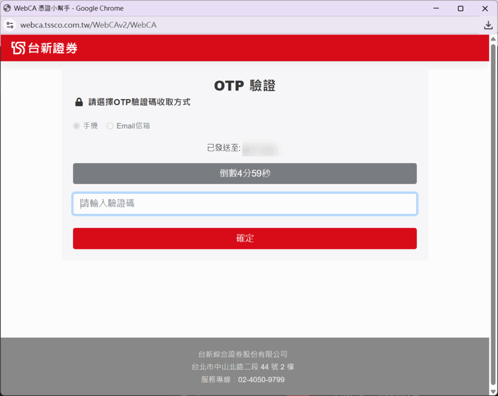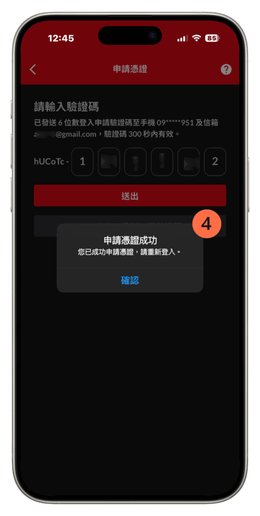 點選申請憑證,選擇使用手機簡訊或者 Email 收取驗證碼
