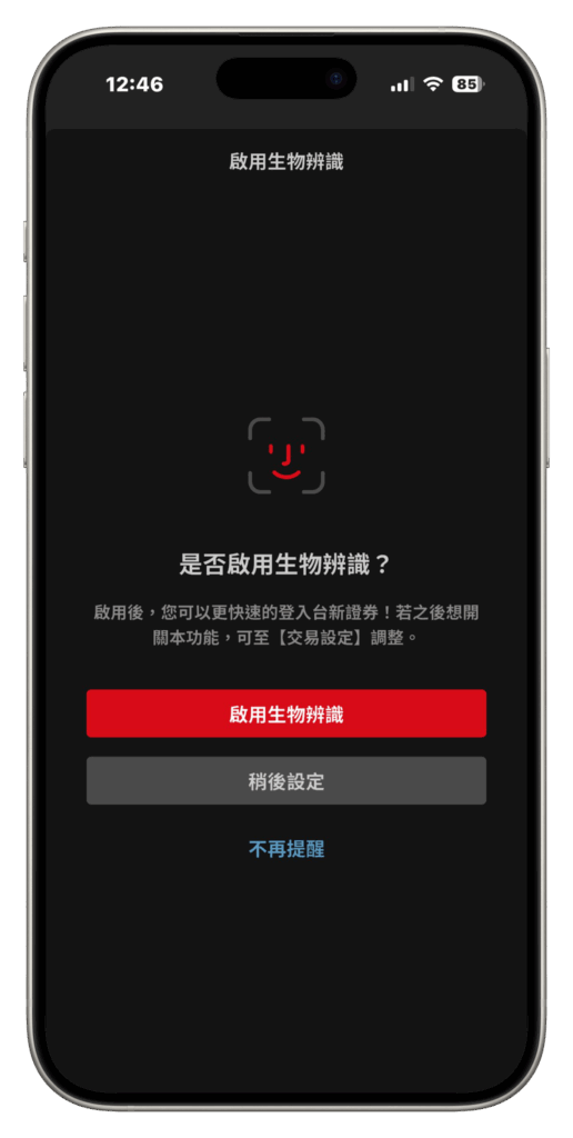 - 首次啟用 富果 App 登入下單交易頁面時,系統會自動引導您進入申請憑證流程,驗證完成後須再次透過身分證字號與交易密碼登入,方可進行交易。
