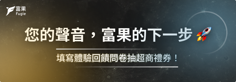 - 抽獎結果將於 2025/12/01 19:00 公告於本頁面,中獎者需於 2025/12/12 前主動寄信至 marketing@fugle.tw 並告知您的姓名、會員信箱、電話、身分證字號等領獎人資料,逾時視同放棄資格。